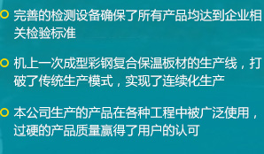 公司是一家瞄準國際、國內(nèi)市場,集科、工、貿(mào)于一體的綜合性公司,擁有各類先進的設(shè)備100余臺(套),公司自主研發(fā)了新型保溫材料及彩鋼復合保溫板材連續(xù)生產(chǎn)工藝,建成了機上一次成型彩鋼復合保溫板材的生產(chǎn)線...